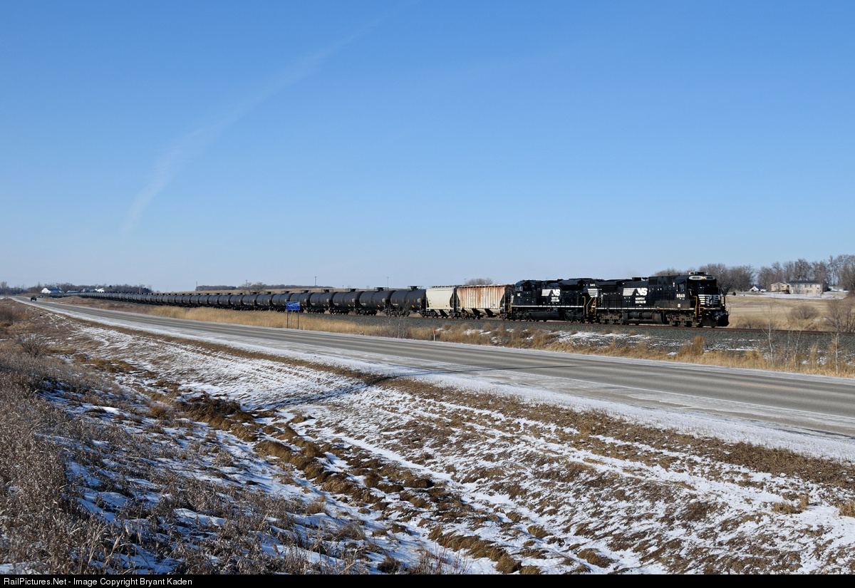 Foreign power is definitely more common along here than it used to be, mostly thanks to oil trains like this one. Here, a standard cab Dash 9 and relatively new SD70ACe from Norfolk Southern hustle east from Glenwood, paralleling Minnesota State Highway 55.