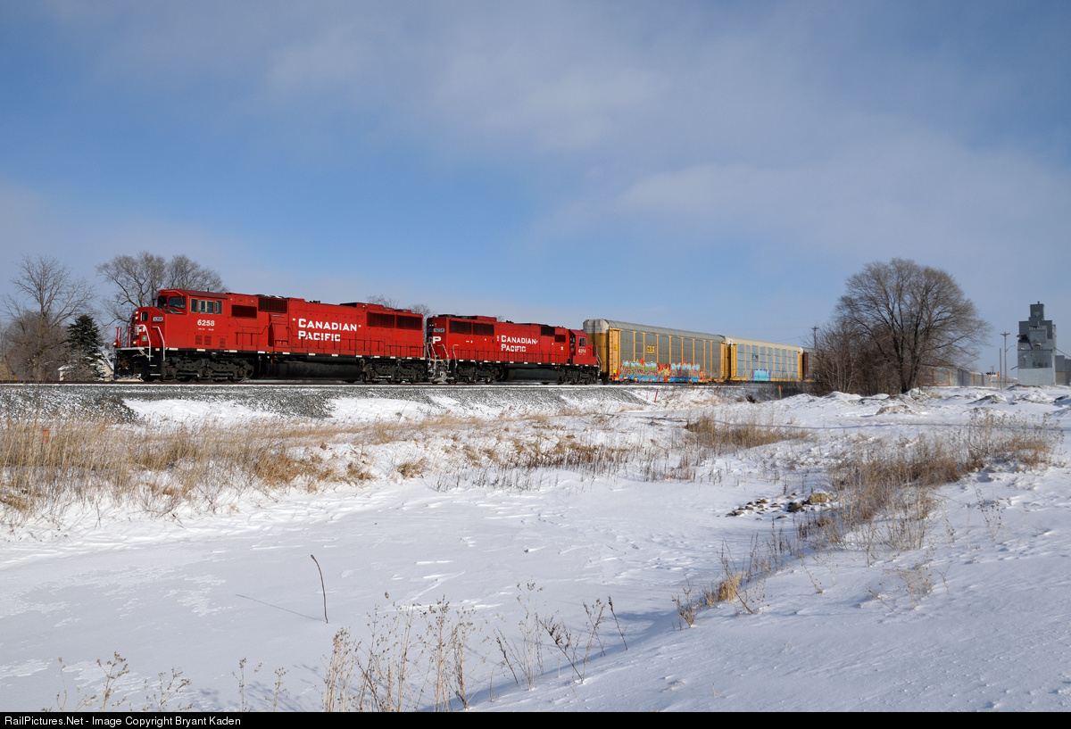 The snow is done falling and the sun has come out, so with a couple of westbounds showing on ATCS, I trudged out of the office and headed for home via the tracks. I had no clue what was coming, and with the wind howling from the northwest at around 35 mph, I had second thoughts about whether this would be worth it or not. The sight of CP 6258 and 6254 bringing a westbound autorack train through town put that question to rest.
