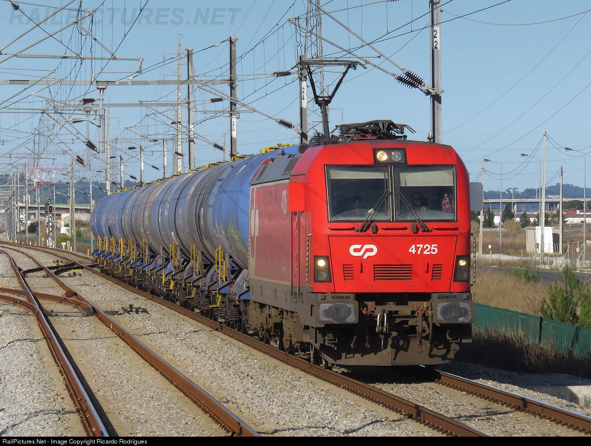 RailPictures.Net Photo: CP 4725 Caminhos de Ferro Portugueses Siemens Eurosprinter ES46B1 at Vila Franca de Xira, Portugal by Ricardo Rodrigues