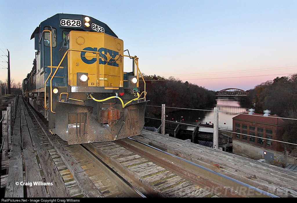 The daily Sioux City, IA, to Waterloo, IA, local is about done with it's work at Iowa Falls as the sun begins to start another day in Iowa. This job is normally a night time local out of Ft. Dodge, but will still be west of Waterloo alot of times due to lateness or heavy work load. Here the job sits over the Iowa River in Iowa Falls.