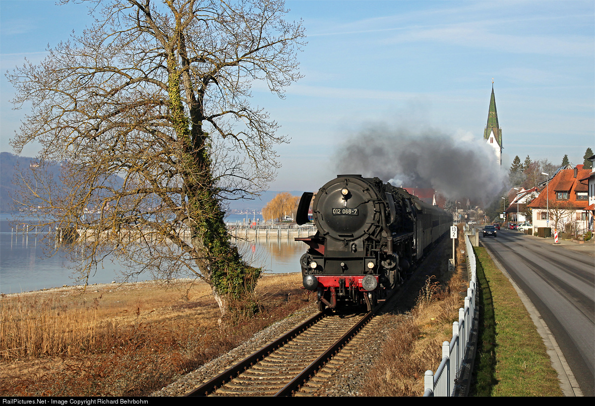 | 01 1066,a three cylinder oilfired pacific express steam locomotive of the „Ulmer Eisenbahnfreunde (UEF)“, is along the lake Konstanz on the way back home from the journey to Switzerland. |