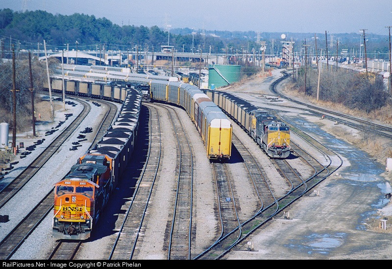 The last UP Scherer coal train sits in Inman ayrd along with a BNSF Scherer coal train.