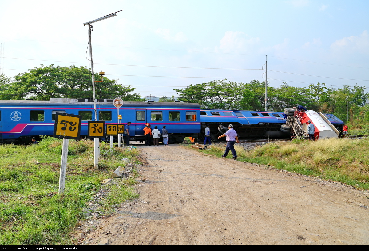 the train 439 from kaeng khoi station - Bua yai station. hit a trailer. 8 passenger minor injuries. engineer safe.