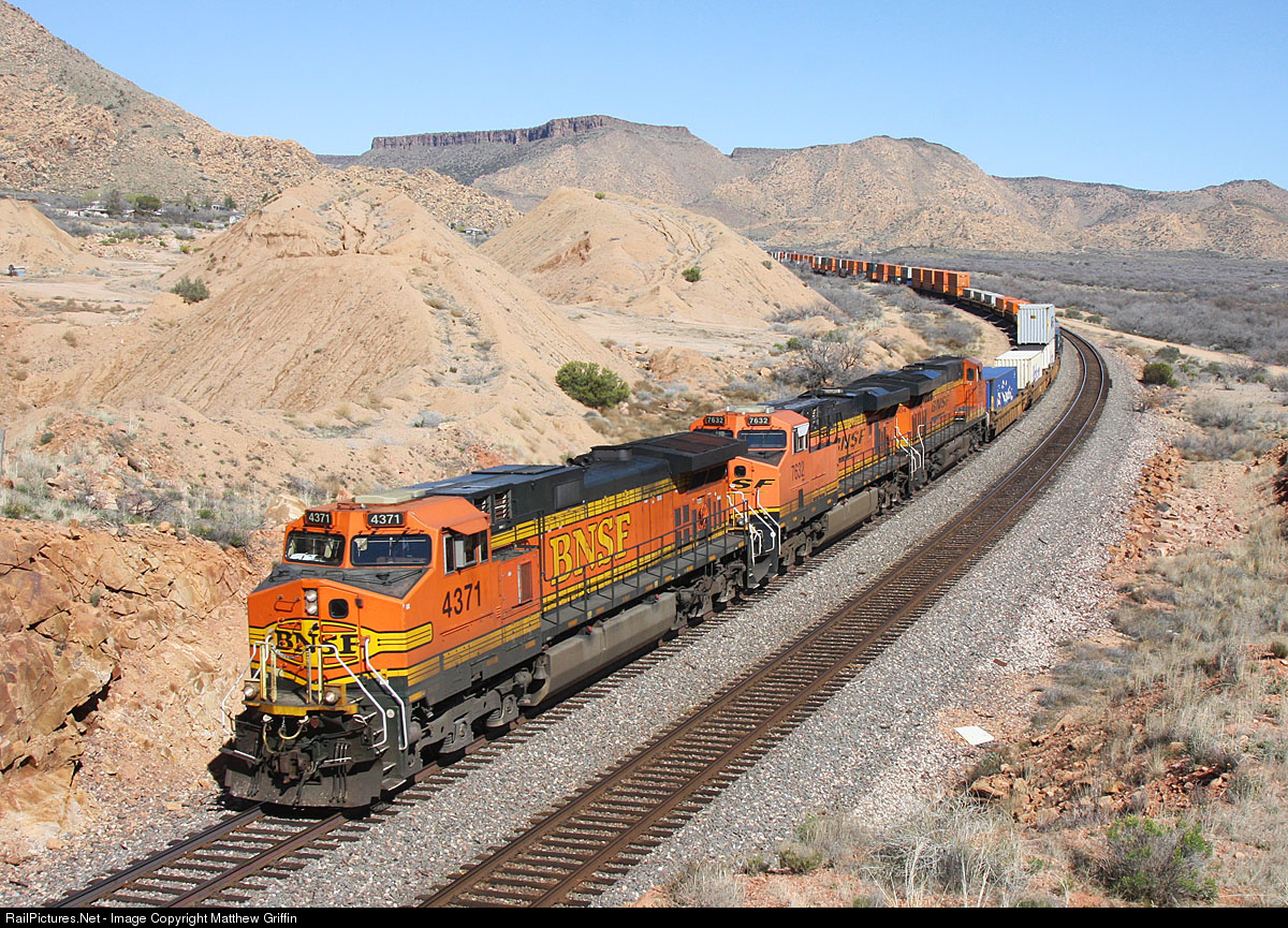 RailPictures.Net Photo: BNSF 4371 BNSF Railway GE C44-9W (Dash 9-44CW) at Valentine , Arizona by Matthew Griffin