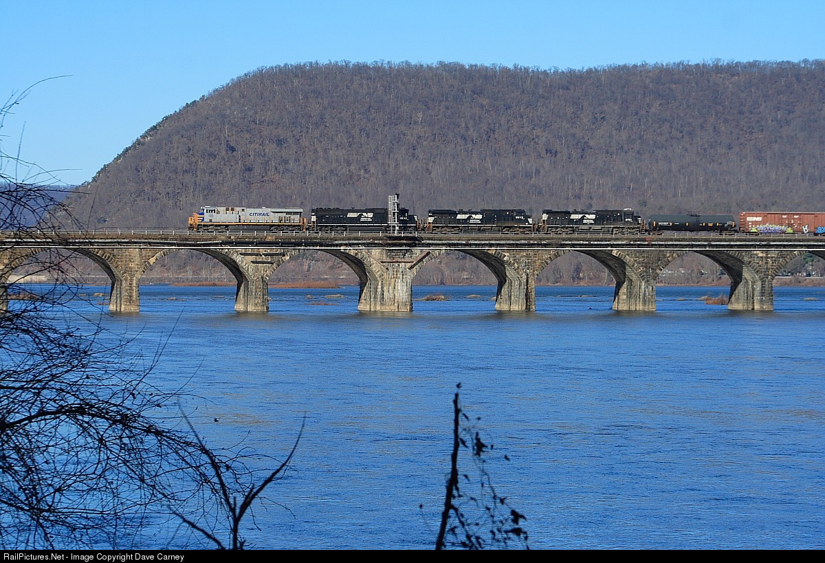 A Citirail ES44 leads a mixed freight across the Rockville Bridge.