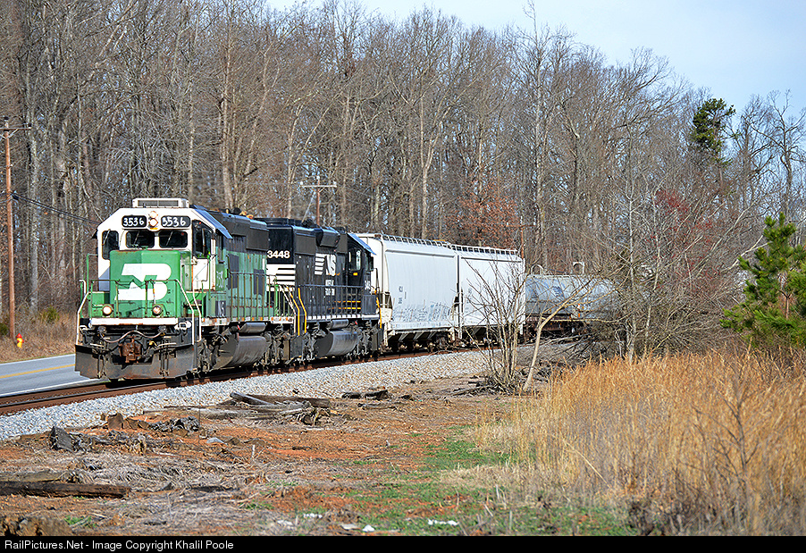 | Happy St. Patrick's Day of 2015! High Point to Asheboro Local Turn P05 heading south with only one of two former HLCX SD40-2s still in ex-BN paint on this rather ironic day. Also take a peek at the nose! |