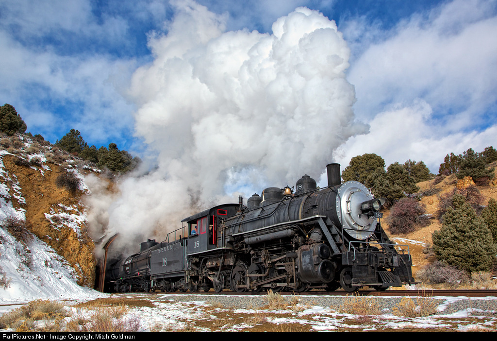 The Virginia & Truckee, has seen quite a surge in traffic over the last few years thanks to recent expansion of the line. Short on motive power, the ("new" V&T has accepted an agreement to lease former McCloud River #18 from the Nevada Commission for the Reconstruction. Though the original V&T had 27 steam engines on it's roster, 18 have been scrapped. Of the remaining 9, only two are operable, though no longer owned by the railroad. Those two, along with former Denver, Texas & Ft Worth #9 (painted as V&T #28) operate at the Nevada State Railroad Museum in Carson City, NV. V&T #29, former Longview, Portland & Northern Railway #680 is the V&T's only other operable steam engine, as V&T #30, an 0-6-0, former Southern Pacific #1251 is in need or restoration. Does that make #18, V&T #31? Perhaps, though, recall, for now, the engine is not owned by the "new" V&T, but on lease.