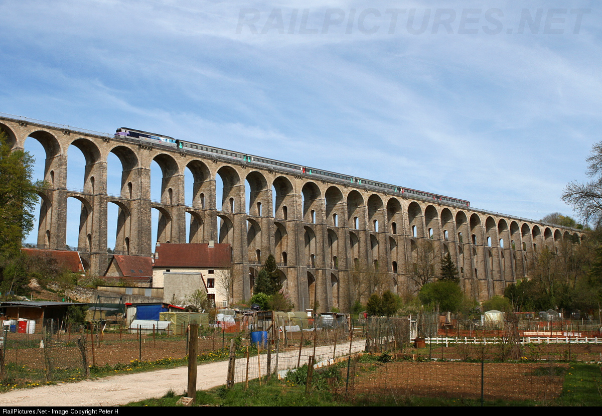 | Directly on the outskirts of the small French town of Chaumont the famous ligne 4 crosses a small valley on a gigantic stone bridge. The viaduc du Chaumont is built like an ancient Roman aqueduct. With a length of 654m (2145ft) and height of 52m (170ft) this 1857 built bridge is still just majestic.