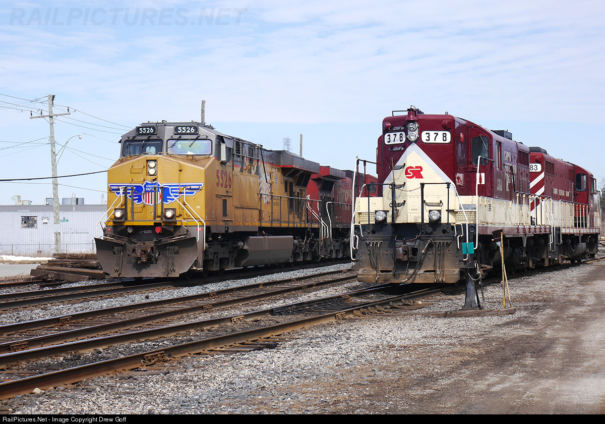 | OSR 378 and 383 idle waiting for Westbound train CP 255 with UP 5526 and CP 9504 leading. Shortly after the CP train went by the OSR crew took off to finish doing their usual switching routine. For some reason this train made both crossings along the Galt subdivision in Woodstock malfunction afterwards and stayed on for at least 30 minutes after it had passed. |