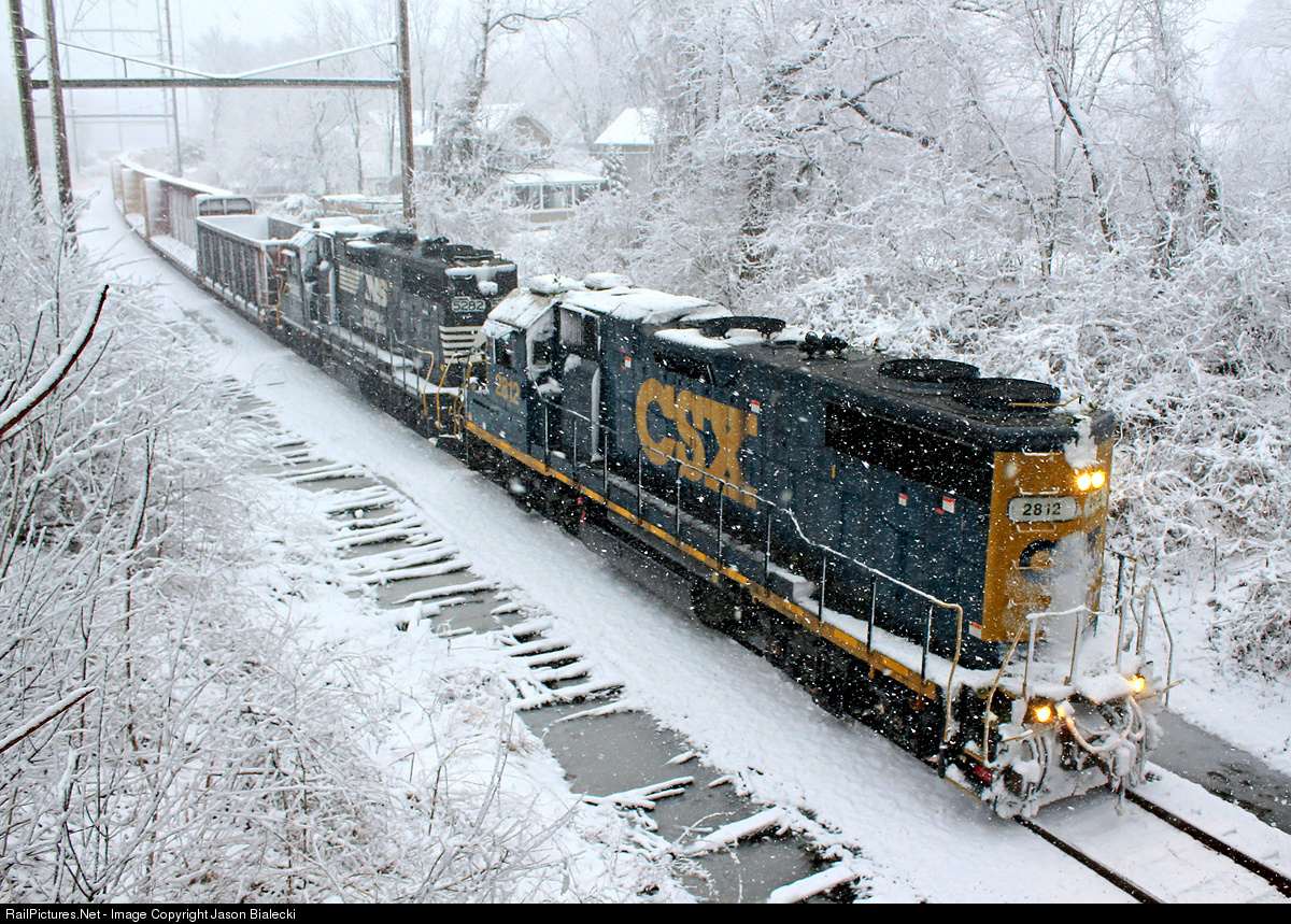 Daylight Return on the Southern - Yesterday, SA31 ran down the Southern Sec. with a single locomotive (see here) , but things got more exciting for fans when the train experienced problems with its air braking system in Farmingdale. The SA31 crew outlawed in Farmingdale and a new crew (SA38) came down late in the night with CSX 2812 to push the train to Lakewood. Usually the train returns with empties late in the night, but the mechanical failure set up a sought-after Friday afternoon return. This uncommon daylight move not only included two locomotives both running LHF, but also occurred during the height of a splendid late winter snow storm. Since the sun would be behind the returning northbound train, the snow storm provided what I believe were ideal conditions. All the info on this freight move were acquired from the “CR on the Southern Secondary” thread at Railroad.net.