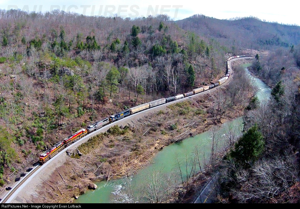 Two KCS Belles and two "Big MACs," one belonging to TFM and one belonging to CSX, are on the point of daily manifest freight Q542 on CSX's KD Subdivision. This section of the line traverses The Gorge, a scenic stretch along the Clear Fork River near the Kentucky state line.