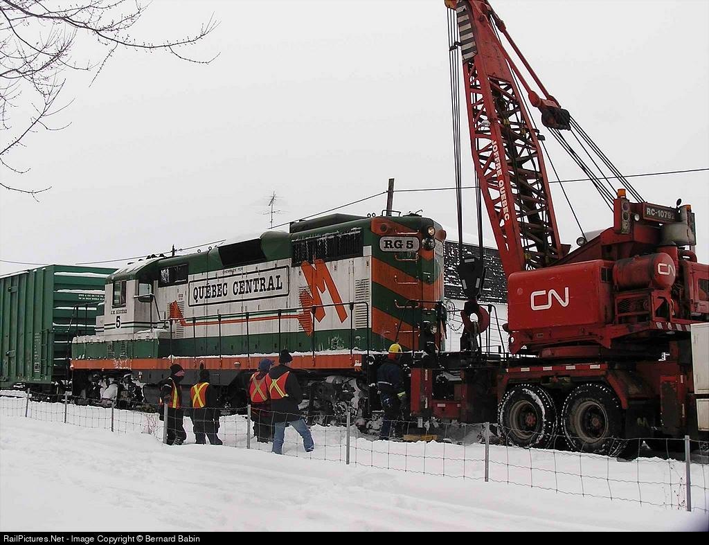 Derailment of locomotive RG5 in Sainte-Marie, QC on it way for Interchange witch Canadian National at CN yard. More pictures of derailments at: http://deraillements.trains.quebec.fotopic.net/