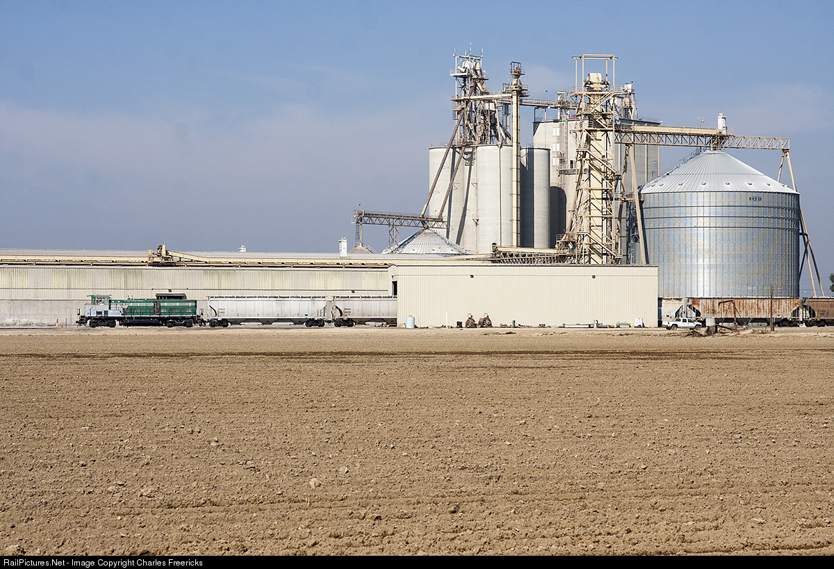 A Rail Power genset sits on the loop track at Bravo Farms in Traver, CA.