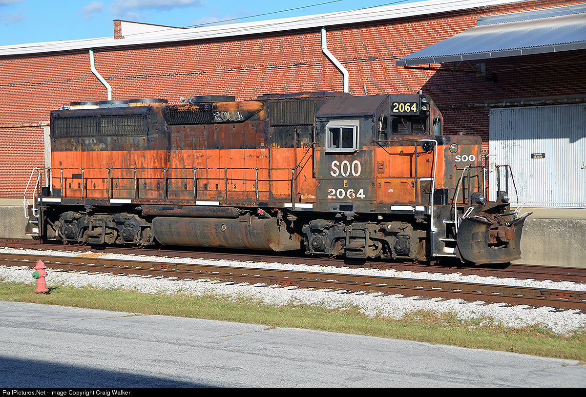 We meet again... On February 26, 2006, I photographed Soo Line GP40 2064 in Canadian Pacific's engine facility in Saint Paul, Minnesota. Eight years, seven months and six days later I photographed it again, this time in Granite City, Illinois. Built in December 1968 and now owned by Respondek Railroad Corporation, but not yet wearing the RRC reporting mark, this engine still retains the colors of original owner Milwaukee Road.