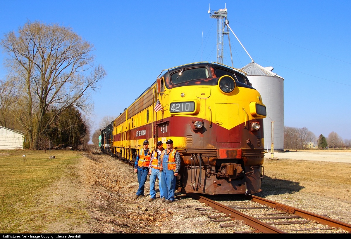 | The fellas of the V V pose in front of their newest units before talking to the many onlookers waiting to talk about the F's. The two F's were being shoved by V V Geeps on this day, but I'm happy to say that the 4210 is up and running as of this past Monday. The V V boys haven't wasted any time in getting these F's operating after all these years. |