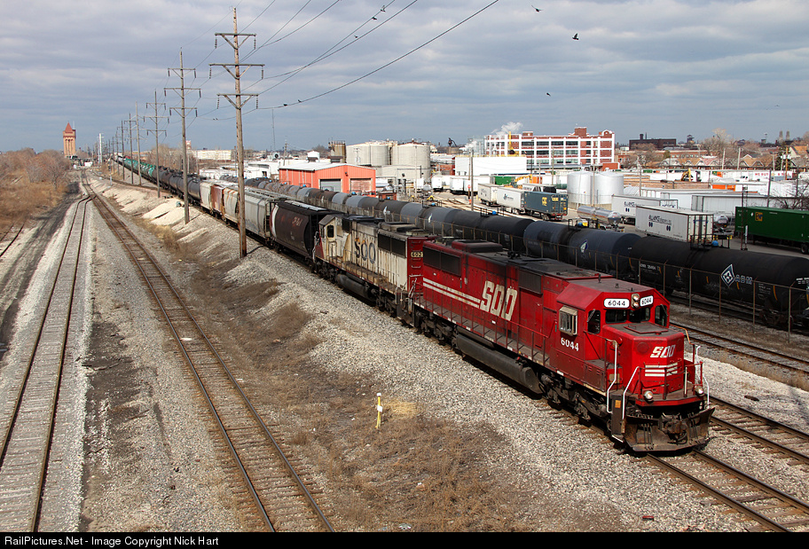 | CP 280 passes 31st Street on the Belt with a delightful pair of SOO SD60's. Clouds dominated most of the day, but I got a lucky sucker hole here! |