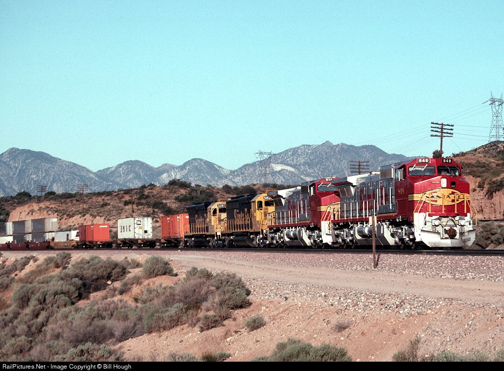 RailPictures.Net Photo: ATSF 848 Atchison, Topeka & Santa Fe (ATSF) GE C40-8W (Dash 8-40CW) at Cajon Pass, California by Bill Hough