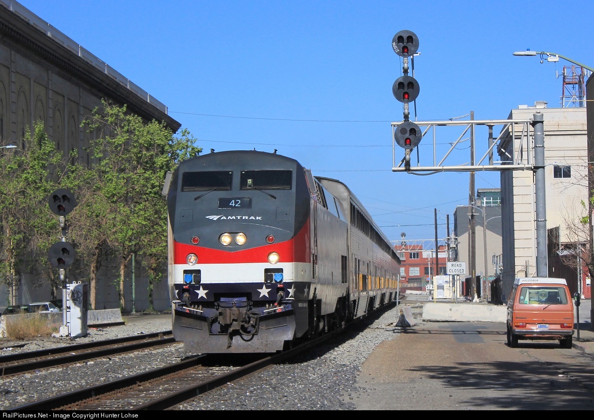 RailPictures.Net Photo: AMTK 42 Amtrak GE P42DC at Oakland, California by Hunter Lohse