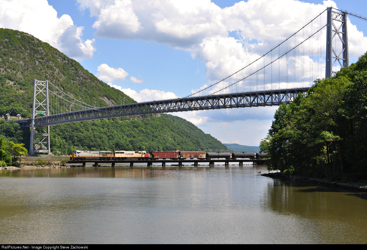 After re-crewing in North Jersey, K041 is now moving North on the CSX River Subdivison as the train ducks under the mighty Bear Mountain Bridge.
