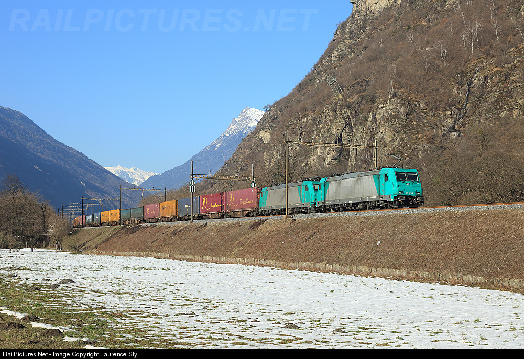 185 576 & 185 577 pass Biasca whilst hauling a CrossRail intermodal train from Zebrugge to Milano Smistamento