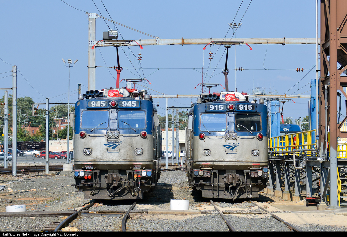 The 945 and 915, two good looking examples of AEM-7s are side by side at the motor pit before being dispatched for their next run. It's almost impossible to get this shot today with so many ACS-64s now active, but at the time this sight was quite common.
