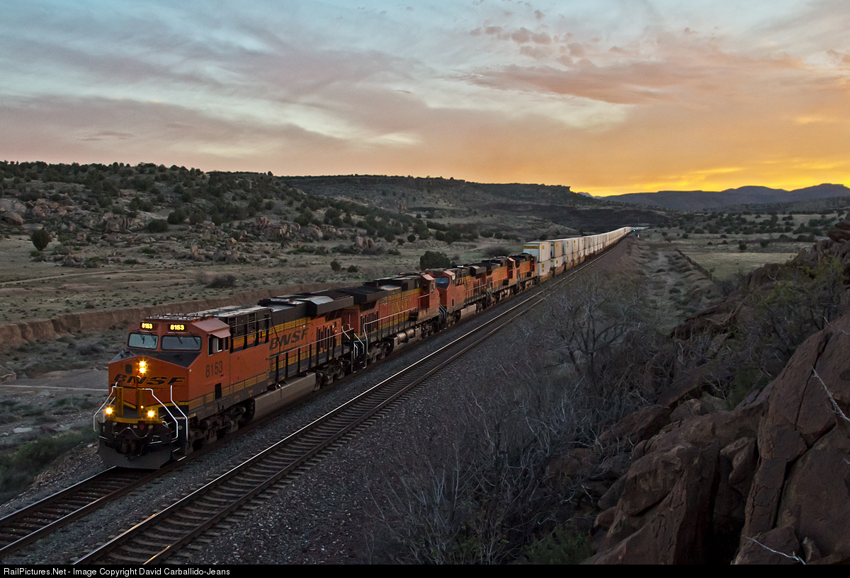 With the sun setting over the hills of Crozier, BNSF's hot Los Angeles, CA to New York, NY Z9 charges back up to speed after exiting Crozier Canyon as it heads towards the summit of Yampai Hill.
