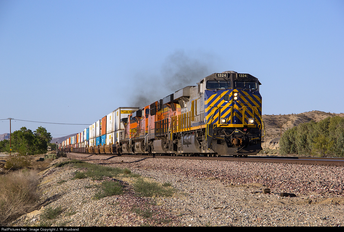 | With most non-BNSF power being pulled at Barstow these days on trains heading into the Los Angeles area, it's a very welcomed sight to find a Citirail locomotive in its eye catching paint scheme lead a westbound BNSF intermodal through the Helendale area on BNSF's Cajon Subdivision. |