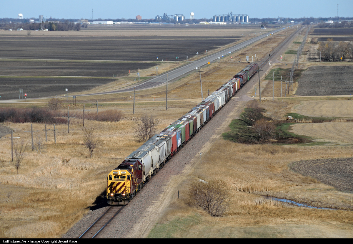 | Breckenridge, MN and Wahpeton, ND can be seen in the distance as RRVW's Hankinson turn heads south on the BNSF. To call this portion of Minnesota flat is an understatement. |