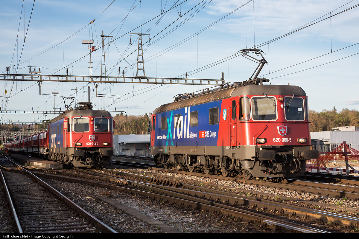 | Re 620 088 with "XRail" paint scheme (the one and only) is leaving Hüntwangen-Wil light for Bülach, while Re 620 042 will pull the Holcim gravel train 67591 to St.Gallen Haggen this evening. |