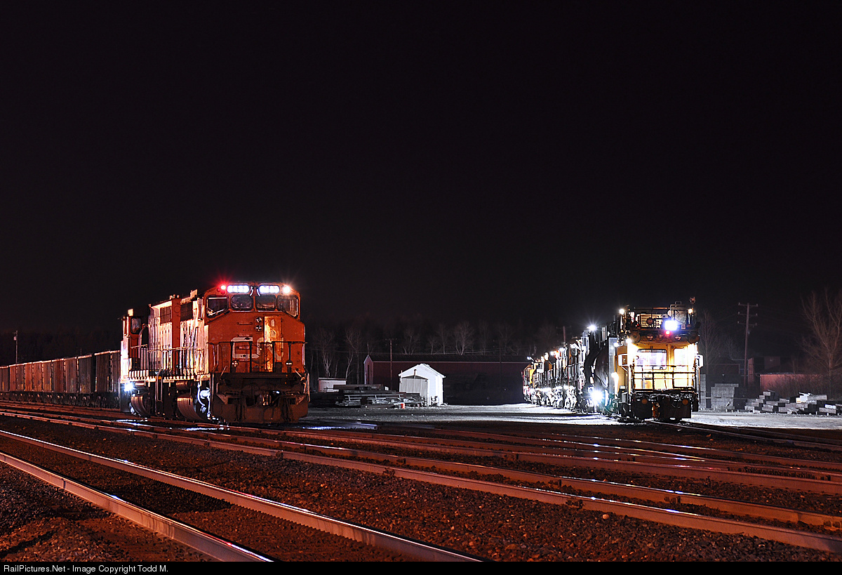 A power set idles away holding down the siding while the Loram RG316 crew prepares their train for departure out the yard at Virginia to head north to work on the CN Rainy Sub. under the cover of darkness.