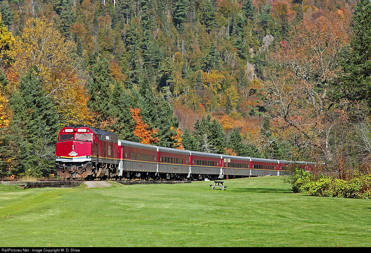 | The Agawa Canyon Tour Train has just arrived at it's destination with CN 105 bringing up the rear. At the time 105 was the only one of the three ex-DRGW Ski Train locomotives repainted into tour train colors. 104 and 106 still in the "bumblebee" yellow and black scheme were on the head end, but would soon be detached and run around the train in preparation for the return trip. Since I'd already had plenty of pictures of all three in that scheme from previous years I wanted to grab some shots of this gorgeous-looking unit before that happened, and before the tour passengers offloaded and swarmed the area. |