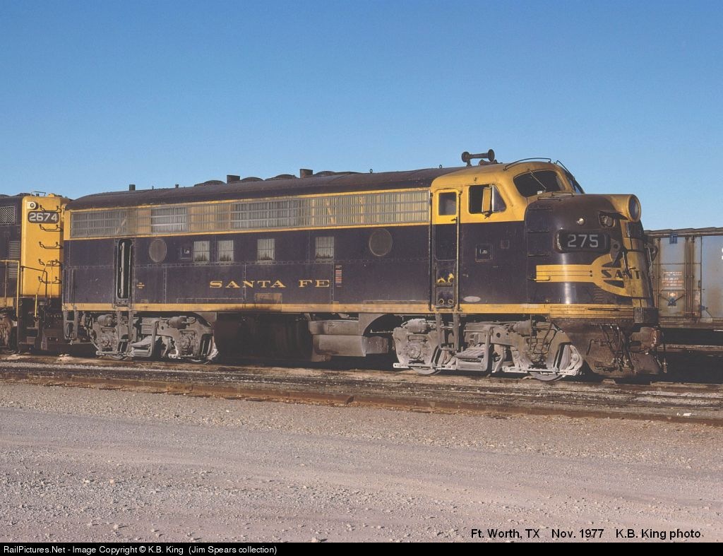 RailPictures.Net Photo: ATSF 275L Atchison, Topeka & Santa Fe (ATSF) EMD F7(A) at Fort Worth, Texas by K.B. King (Jim Spears collection)