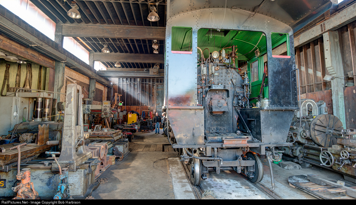 | The morning sun streams in through the skylights at the Mineral shop at the crew discusses the day's work. The 2015 regular season operations will begin soon, and the shop crew is working hard to get 2-8-2 Rayonier 70 ready for operation. |