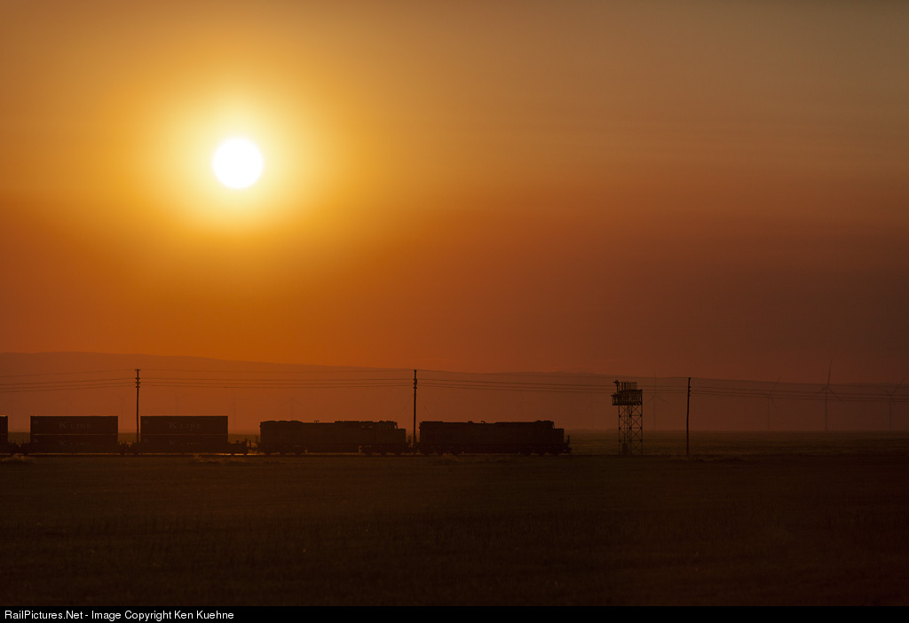 Smoke from distant wildfires mingles with the rising sun as an eastbound stack train glides through E. Reverse and prepares to drop into the Snake River Valley. Signal Bridges and Codeline, which have stood guard here for years mingle with the modern windmills that have sprung up in recent times. Soon, they will be gone. Perhaps they already are?