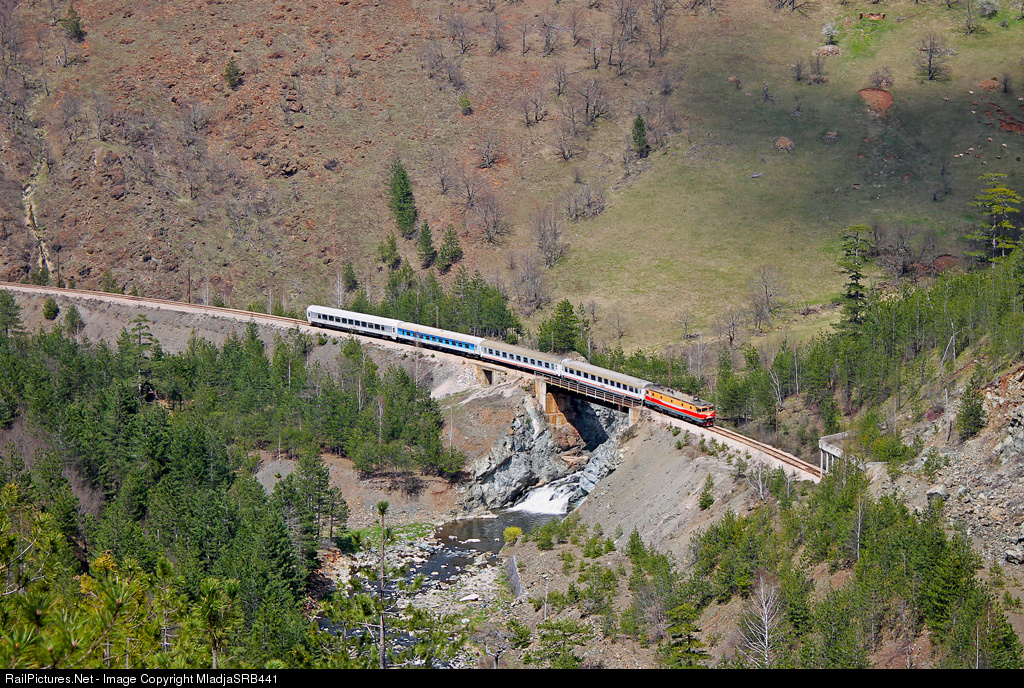 | Railway Belgrade- Bar, IC train 430 on the most beauty section on this railway, on bridge above river Crni Rzav. |