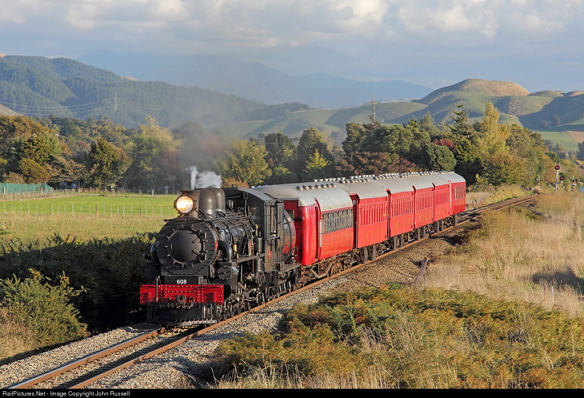 | Ab 608 was built by NZR Addington (Christchurch) in 1915 and named "Passchendaele" in 1925 as a War Memorial for over 400 railwaymen who perished in WW1. It is now owned by NZ Railway & Locomotive Society who restored it for the centenary. This ANZAC Day Excursion was part of 100th annual remembrance ceremony at the National War Memorial in Wellington. ANZAC Day is observed in Australia and New Zealand to remember the sacrifice of servicemen. The train returning from Wellington is north of Manakau. |