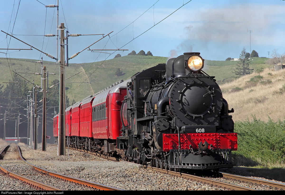 | Ab 608 was built by NZR Addington (Christchurch) in 1915 and named "Passchendaele" in 1925 as a War Memorial for over 400 railwaymen who perished in WW1. It is now owned by NZ Railway & Locomotive Society who restored it for the centenary. The train is an ANZAC special Palmerston North to Ohakune and is seen on the 2% climb to NZ's highest station, Waiouru. |