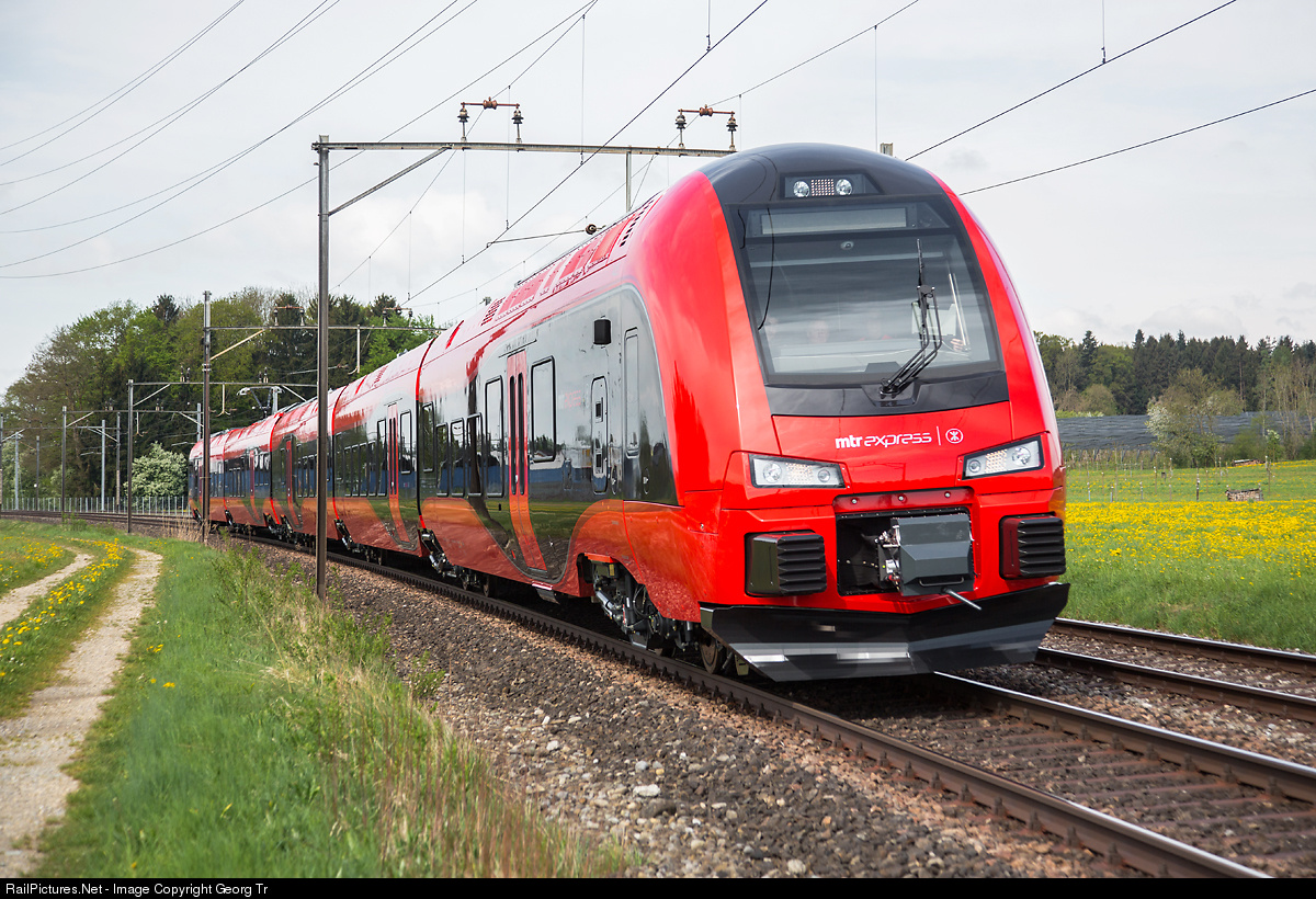 The fifth of 6 ordered Intercity Flirt trainsets for the swedish MTR Express had the final approval run today between Sulgen and Romanshorn, starting from Stadler Rails commissioning center in Erlen. X 74 005 is running between Erlen and Oberaach.