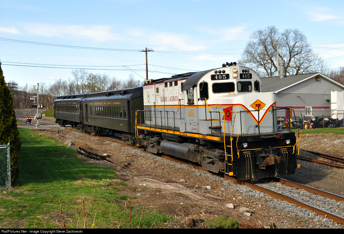 In this scene DL 405 leads two CNJ coaches South on the Carbondale Branch after a day of hauling passengers on the line. While the mileage for the train was rare, it was equally as rare to see DL power on a Steamtown excursion as they generally use their own power. |