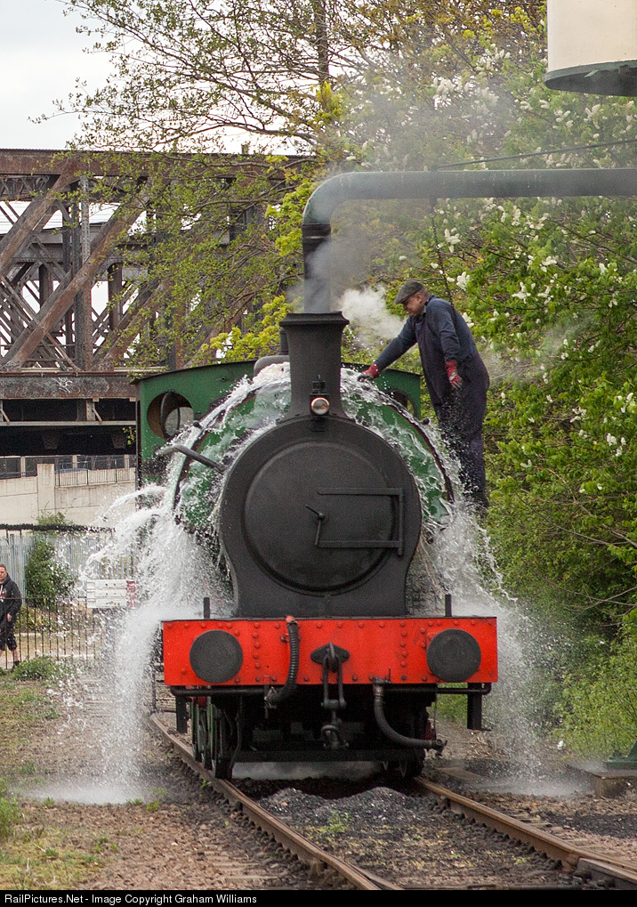 The crew of Hunslet 0-6-0 saddle tank, Ring Haw, are a little late in turning off the tap while watering the loco at Peterborough, on the Nene Valley Railway