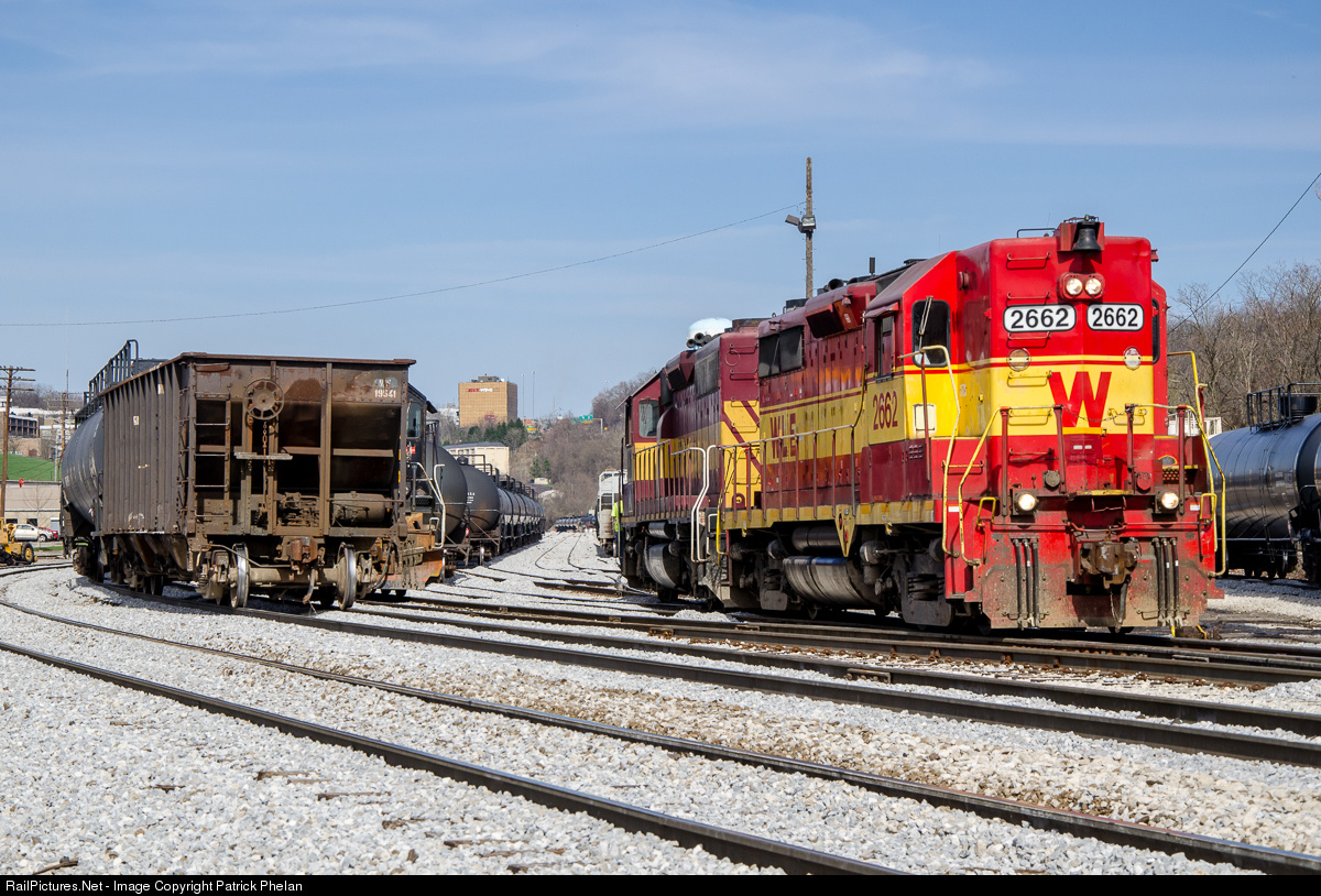 W&LE's last remaining Kodachrome unit switches Rook Yard with a former WC SD40-2 as a former Rio Grande tunnel motor hides behind a cut of LPG cars and a spacer car.