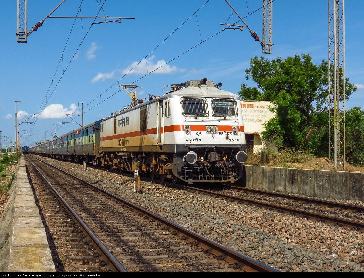 | WAP-7, IR's most powerful passenger class electric locomotive, with Coimbatore bound Intercity Express. This WAP-7 belongs to ROYAPURAM ELS , which is bound to hold the largest number of 3-phase electric locomotive of IR |