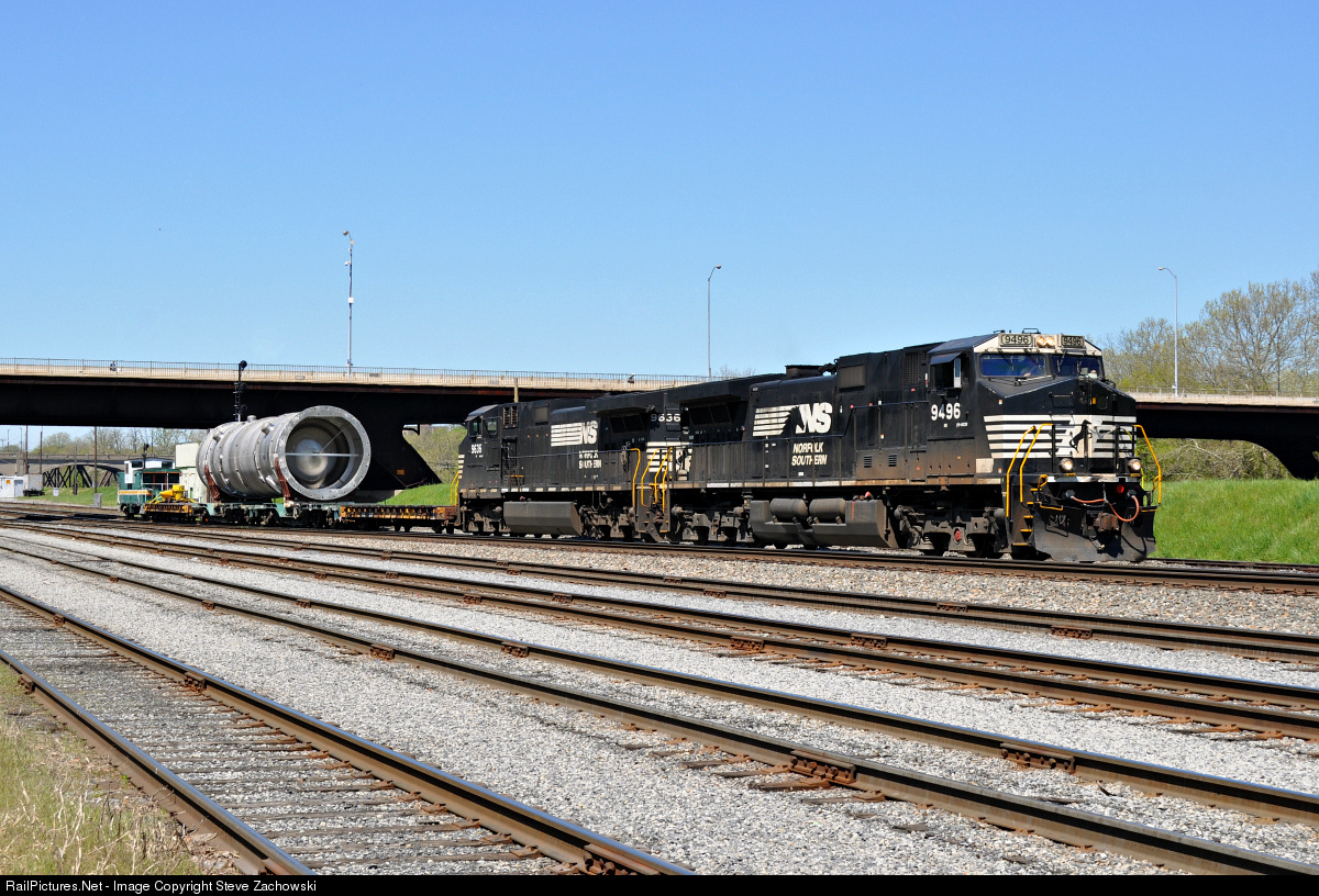 Two NS Dash 9's team up to bring an Air Products Heat Exchanger East on the Lehigh Line. The train had sat in Bethlehem for a few hours in the morning to allow hot-shot intermodals to run before it as trains cannot hold in passing sidings for this move. The heat exchanger on this day was unlike most with its symmetrical appearance - most exchangers look similar to a space ship. |