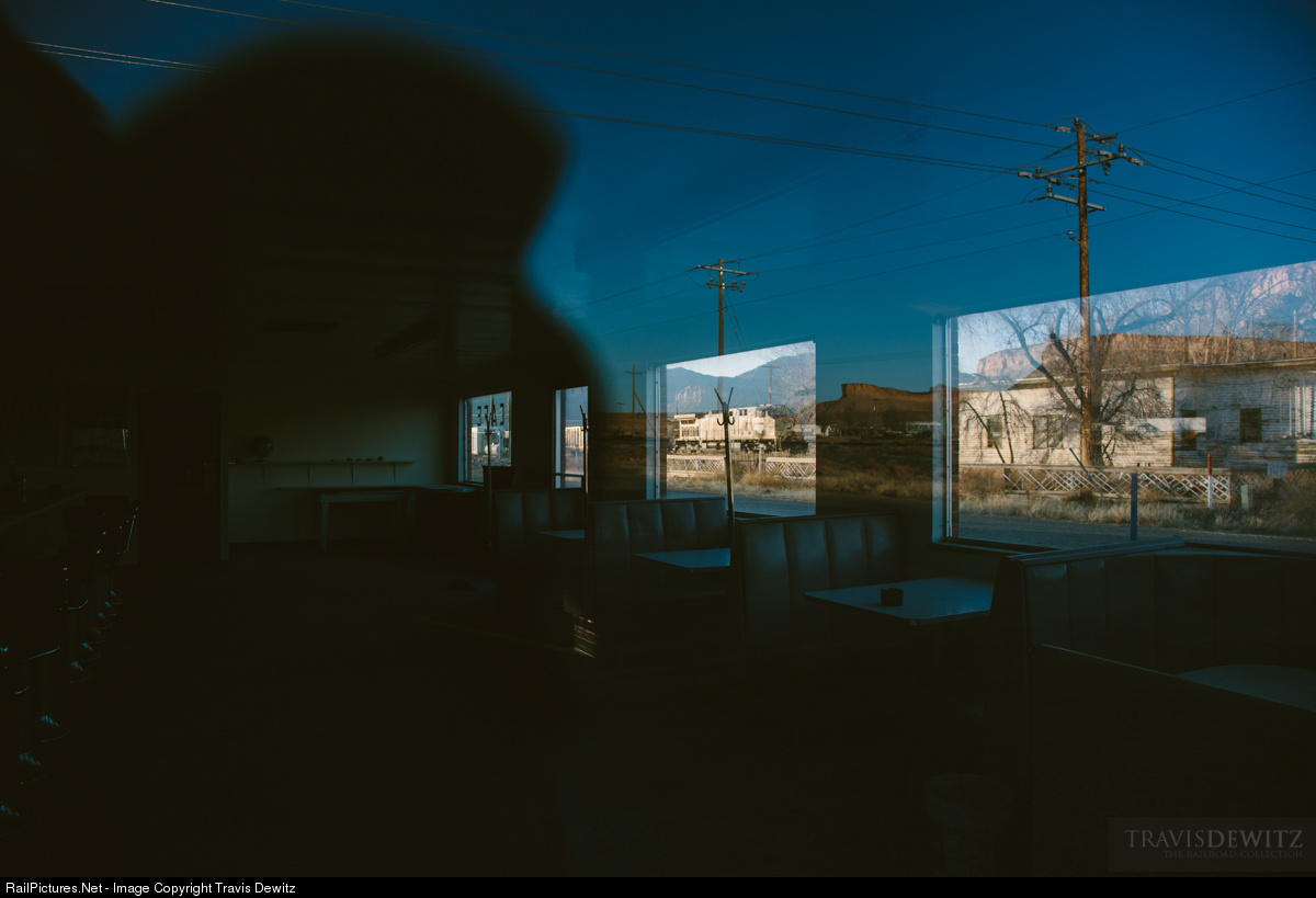 Deep black coal is transported west along the Book Cliffs in eastern Utah. The tracks here are the former Denver and Rio Grande Western Railroad's that now parallel I-70 for the most part between Denver, CO. and Green River, UT. Green River isn't that far west of Thompson Springs. Thompson Springs was quite the railroad town in its heyday including a passenger station and wye connection to the mainline for the branchline to the coal mines up the Sego Canyon, north of town. Many things led to the demise of Thompson Springs including the construction of I-70 a couple miles south and away from the Old Cisco Highway which still passes in front of this old roadside cafe now closed for business.