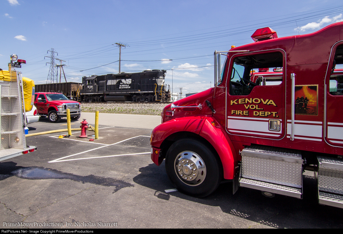 The Kenova local waits for clearance on the tracks ahead while the Kenova Volunteer Fire Department conducts a training exercise.