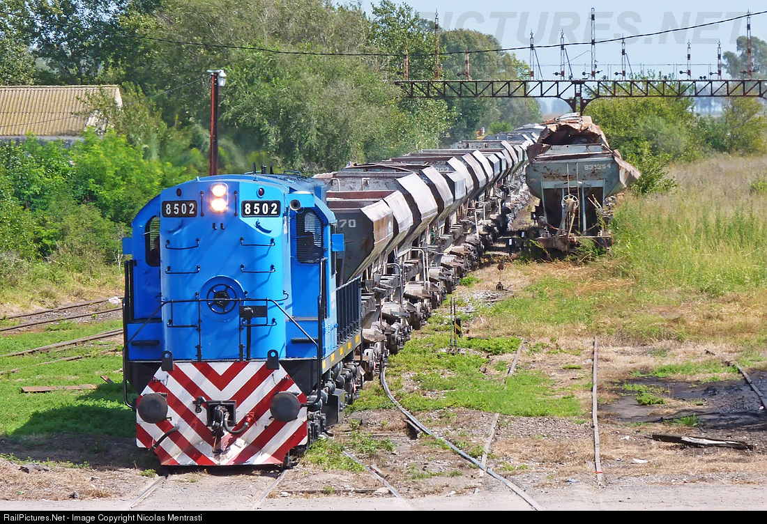 | Train #F10 of Belgrano Cargas y logistica with an old ALCo locomotive #8502 recently repaired and painted with the new Blue paint livery is entering to Rufino station. |