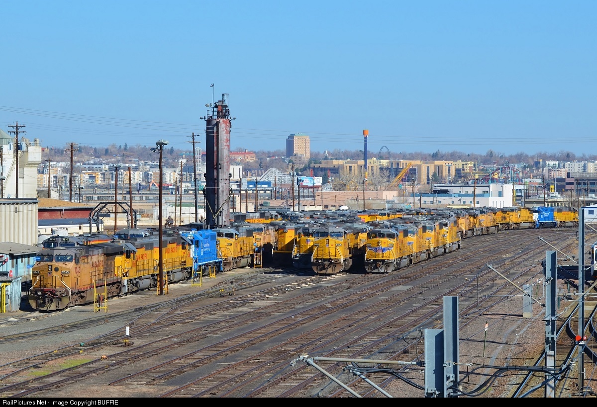 There is usually a nice variety of UP power sitting in the Burnham Shops yard. Some of these are in long term storage and some are likely destined to be sold. In attendance on this day are UP 7043 (AC6000CW), UP 7830 (AC45CCTE), UP 6829 (AC4400CW), UP 2327 (SD60M), UP 1363 (ex DRGW GP40-2), UP 1932 (GP60), UP 9406 (C41-8W) and even a couple GMTX GP38-2's.