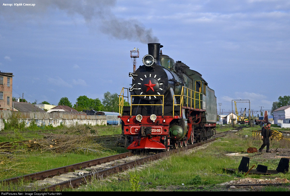 | The steam locomotive Su251-86 stay in depot Tarasa Shevchenka, before a trip retro train #6102 Tarasa Shevchenka station (Smila city) - Cherkasy - Zolotonosha |