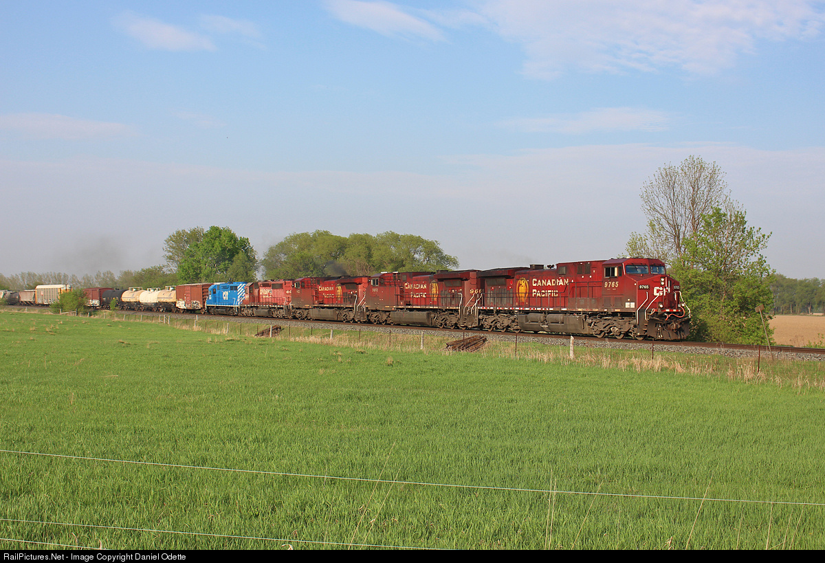At only 1720 feet (or 19 cars), CP 420 has had no problem getting up to speed after dropping a few cars off at Utopia. For power is CP 9765, 9661, 9653, 6009 and CEFX 6537. 6009 and 6537 had gone through on 247 only yesterday, but was ready for 420 to pick up the next morning in Sudbury. 420's pathetic length will change at Spence, as its got many autoracks to pick up. Doing what a GE does best, 9653 in third looks like it's pulling the entire train. CEFX 6537, the reason I went to see this, is the only dead unit however. It will be dropped off at Spence. It will be interesting to see what CP decides to do with it. Performing the Honda Job at Spence is high on my list of wants, but I don't see CP using a leasing unit for yard power. Maybe though, who knows.