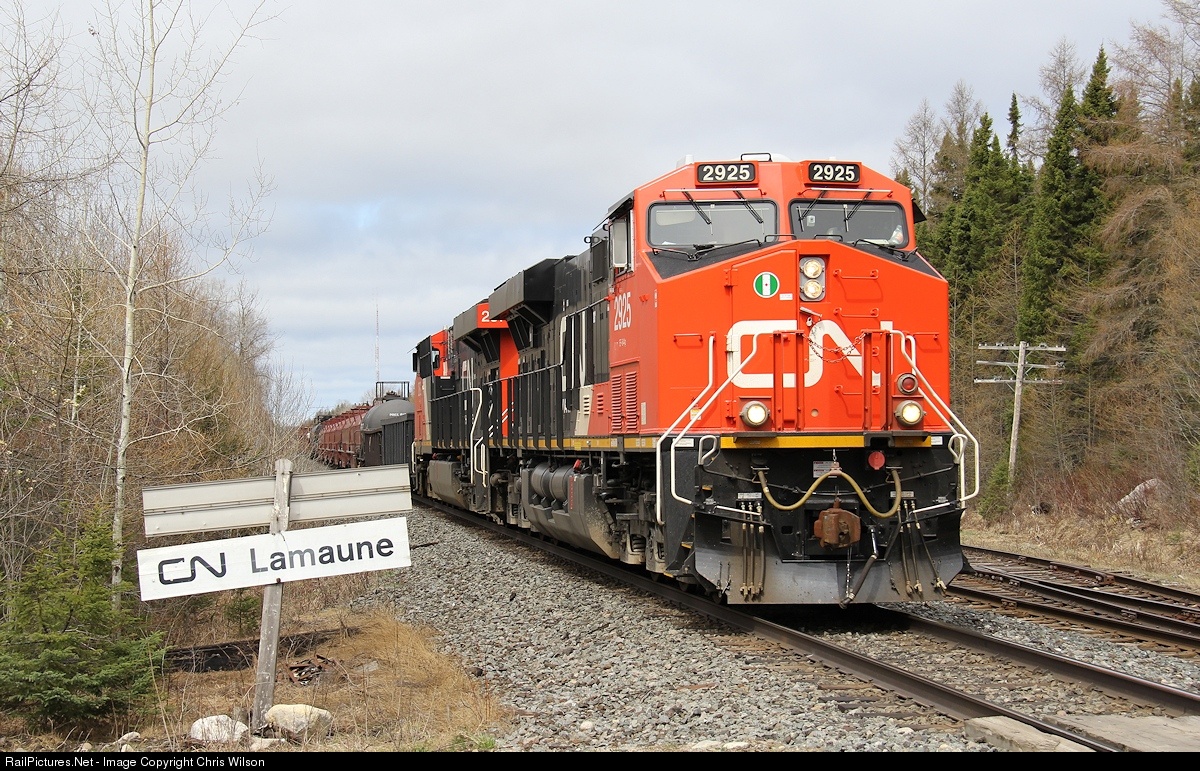 Starting to be the normal for trains between Winnipeg, MB & Toronto, ON is a pair of "AC" units lugging away. This train is no exception with 120 cars, at about 0.6 HPT! Add to that, this train can't go any faster than 35mph with the dangerous commodities restriction across Northern Ontario!